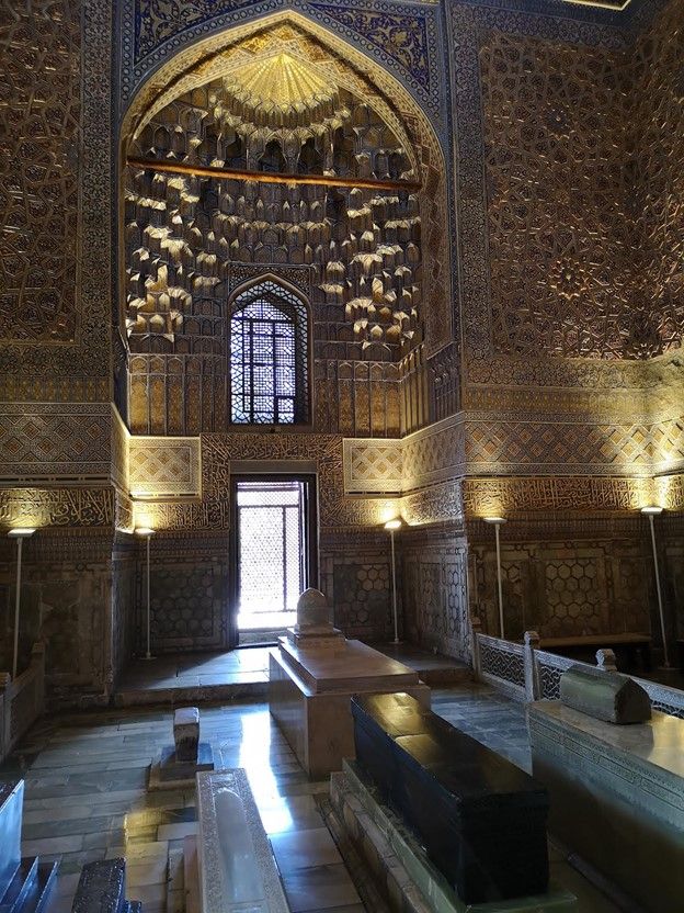 Interred in Samarkand, Timur’s tomb stands apart from other Timurid graves, marked by a sober black jade monolith. He rests beside his spiritual guide, Sayyid Baraka. The inscription above the entrance is quintessentially Sufi: “Blessed is he who refused the world before the world refused him.”