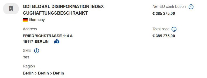 Interestingly, the May 2022 data still showed a significant grant close to €1.5 million from the FCDO. However, as British financial support dwindled (its final FCDO contribution came in 2023), GDI began naming Disinformation Index Inc.—its American branch—as its primary donor. The latest register information is available here.