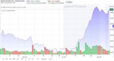Petrobras (PBR), three-month chart. Courtesy YahooFinance.com.