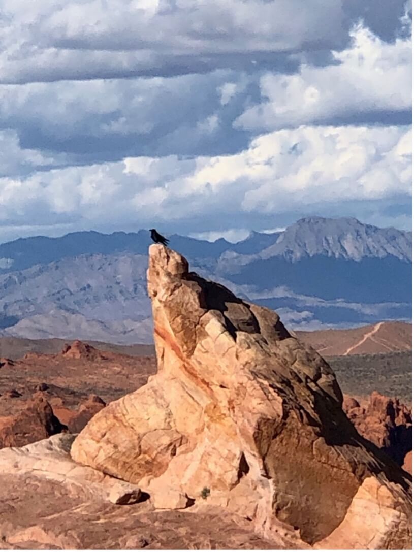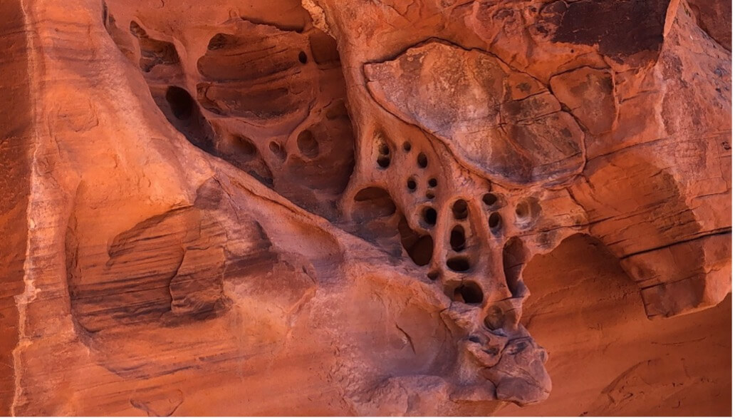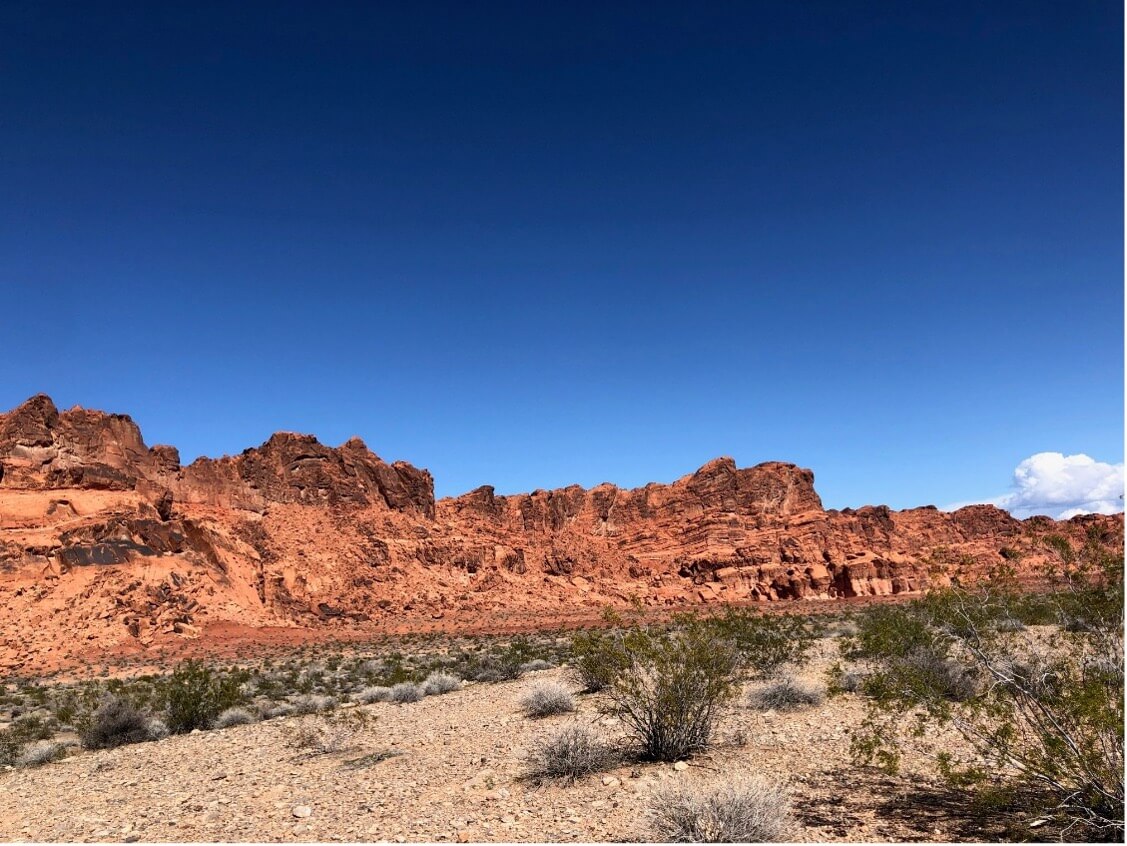 Outside, under a vivid blue sky, I took in classic Nevada rock formations such as the Big Spring Limestone, the bright red Aztec Sandstone, and the brownish Chinle Formation.