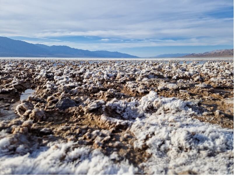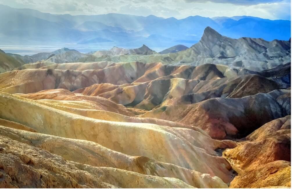 In Death Valley, I traversed slopes beside massive uplift features including faults and alluvial fans shaped by the waters of ancient freshwater lakes, which have since dried into borax salt flats.